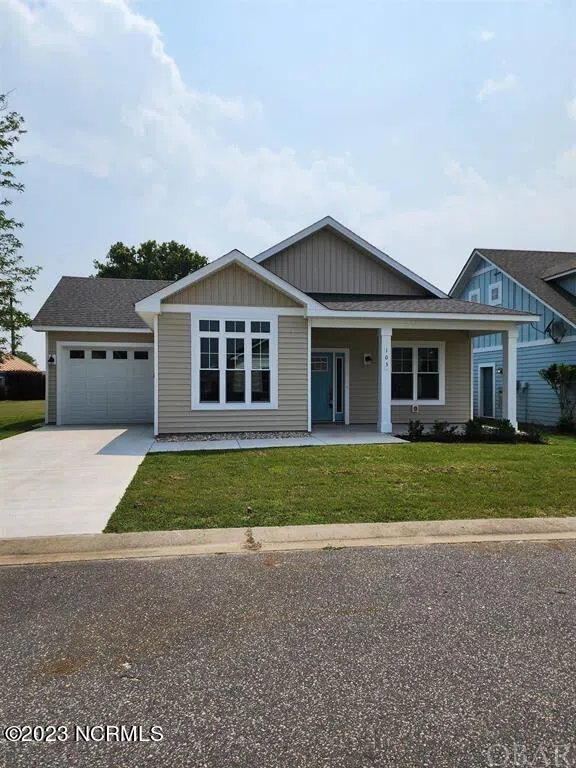 You will fall in love with the charm and coastal feel of the Jensen plan. This single-level layout is perfect as a year-round or second home. Offering an open flow concept with vaulted ceilings and seamlessly incorporating the dining room, kitchen with island and comfortable living room. Enjoy evening breezes on the front or rear porch. The generous owner's suite offers a direct access to rear patio, trey ceiling, walk-in closet, deluxe bath with dual sinks, and semi-custom tile shower. Bedrooms 2 and 3 share a hall bath and are in the rear of the home. This home also features a convenient laundry room with direct access to the one car garage. Luxury features include stainless steel appliances, solid surface countertops, custom tile backsplash, luxury vinyl tile (LVT) flooring in main living areas, tile flooring in full baths, semi-custom tile shower with waterfall accent tile in owners' bath, Delta plumbing fixtures, craftsman trim throughout and designer lighting package. Waterside Villages is a gated community with resort style amenities that include clubhouse, swimming pool, shallow water marina, community pier and picnic pavilion. Conveniently located 12 miles from the OBX beaches, Waterside Villages is in the heart of Grandy and near three public golf courses and only minutes to local shopping and restaurants.