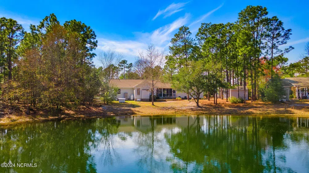 Sitting on a waterfront double lot, this well maintained and thoughtfully updated home, offers a private and peaceful sanctuary minutes from the beaches of Oak Island and the historic village of downtown Southport. The property is surrounded by beautiful mature landscaping that provides privacy and protection from the elements. Inside you will find an oversized Primary Bedroom with calming water views, hardwood floors and updated ensuite bathroom. The recently updated modern kitchen flows purposefully into an oversized dining and living area that are perfect for spending time with family and friends. The unique well thought out floor plan feels large and bright, providing an open feel while maintaining useful separation for each living space. Sit by the cozy fireplace in the living room or step through the french doors into the breezeway of the vaulted screened lanai, offering gorgeous water views and ample outdoor living space. From there you can step out onto the newly built treated wood deck and into the large, private waterfront backyard. Fish in the pond or sip coffee while watching the birds, turtles and ducks, in this backyard oasis that includes a garden shed and raised bed planters. The breezeway also connects the oversized garage/workshop to the main house. This area offers ample overhead storage as well as room for all your toys, tools and projects. With two driveways parking is never an issue, and there is plenty of room for boats and/or RVs. With no HOA and lower county tax rate this property offers freedom and affordability. Boasting dual pain windows, a New Fortified Roof in 2021 and professionally encapsulated/conditioned crawl space in 2022, this home provides peace of mind, efficiency and protection from the surrounding environment. Having a new fortified roof and the fact that this house is not in a flood zone will allow lower insurance rates than much of the surrounding area. Boiling Spring Lakes is a sought-after lake community, perfect for nature enthusiasts who love outdoor activities. Only a 30-minute drive from downtown Wilmington and ILM Airport, this safe and quiet community gives you easy access to all the area has to offer, while allowing you the peace and serenity of living in the country. Don't miss this opportunity to own this gorgeous, peaceful and affordable waterfront property.