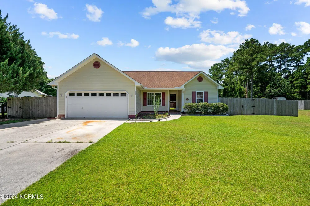 ***CHERRY BRANCH HOME*** 3 bedrooms and 2 bathrooms with a split floorpan awaits. This home offers a large primary suite with a huge walk in closet, a spacious living room with a gas fireplace and a door leading to the back patio and well maintained, fenced in backyard. Lots of space for entertaining. New flooring, paint, counter tops, light fixtures, outlet covers and has been professionally cleaned and pressure washed. Close to MCAS Cherry Point and area beaches. Neighborhood amenities include 2 pools, clubhouse, playground/picnic area, tennis/pickleball court, basketball court and a private river beach.