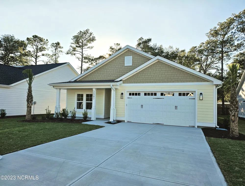 Enjoy homeownership in the new coastal comunity, GREENSIDE MANORS, within the lush, active community of Brick Landing with a spectacular pool facility, pickleball courts and tennis - and lots of resident's clubs. This delightful, one story- three bedroom, two bath, two car garage home, the BODIE, flows well and has become a popular plan with its ''open space'' kitchen, dining and living room, generous master bedroom suite with large walk-in tiled shower and walk-in closet. This is a quality build and is LOADED with upgraded features and finishes. Including Fiber cement and Board & Batten siding; Elegant coastal color pallet; Wainscotting entry hall; Modern crown and base moldings and modern window and door trim moldings throughout; Luxury laminate flooring; Fireplace encased in coastal Shiplap and built in shelving on either side; A well equipped Kitchen with Granite counters, Stainless appliances, Large undermount sink, Tiled backsplash, Under cabinet lighting; A delightful Master-suite with Shiplap accent walls in both the bedroom and bathroom; a Tiled walk-in shower and a enviously large walk-in closet; Site-built custom shelving in all closets throughout; Quartz bathroom counters in all bathrooms; Finshed-painted garage with built-in drop-zone shelf; Covered front porch, and a screened back patio; Pre-wired for TVs and exterior security system; Sodded with irrigation system. Loaded and stunning!!! Located just outside the back gate, across from the ICW and about ~1/4 mile from the public Wildlife boat ramp with direct ICW access, and about 4 miles to Ocean Isle Beach's beautiful beach strand, new coastal shops, restaurants and community services. Call to confirm your visit to one of our many open houses or to discuss making this new coastal home - Yours!