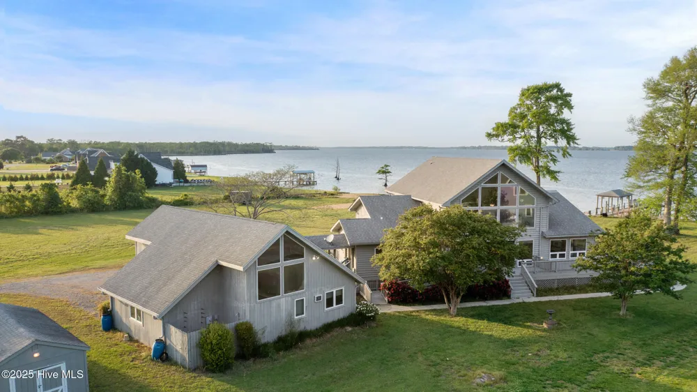 MOTIVATED SELLER! Welcome Home to your waterfront dream home right off of the Little River and the Albermarle Sound, seller has thought of everything, 3 bedroom 3 full bath, flex space, study, sun room, screened in back porch, wrap around deck, Views all around await from inside, tons of natural light, enjoy the large den with gas fireplace and vaulted ceiling , tons of storage space, large mud room , New LVP flooring, kitchen with breakfast nook, generator, huge detached garage with office space that could be used as guest house that has full bath, lush fruit trees, pier with boat lift, boat house, lights and dock, New 50 gal water heater installed inside the house and new water heater in the garage. Seller to provide a one year warranty for buyer at closing up to $1000