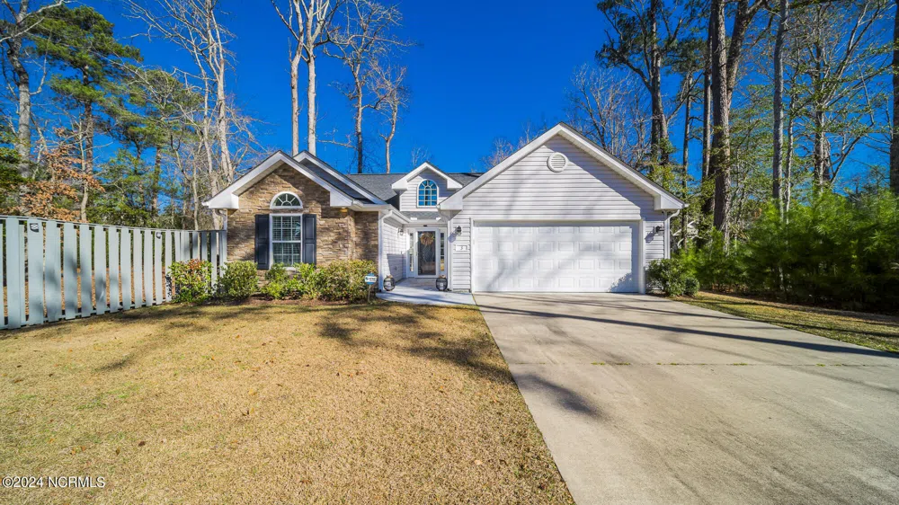 PRICE REDUCTION!! Welcome Home!! This is beautifully designed and maintained home. Custom built in 2018 Square Footage 1430. Charming and private vacant lots on both side of this home with no plans to be built on. Handicap accessible .This home has been used as a second home. Enjoy vaulted ceiling in living room and tray ceiling in master bedroom. Plenty of natural light. Modern kitchen with granite counter tops, upgraded cabinets, LED lights and stainless appliances, including refrigerator. Hardwood flooring throughout living room, kitchen and dining area. Split floor plan with large master suite with a walk- in closet and large private bath walk-in shower. Upgrades include Seamless gutters, finished garage with opener , cased windows, crown molding, led lights and a fenced in yard and a patio. This home is high and dry with excellent drainage