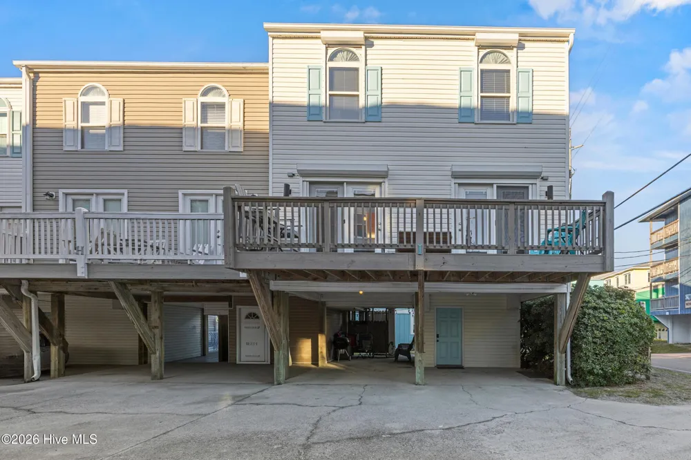 Ideally situated across the street from the beach with access to a community pool, this end-unit townhome is designed for relaxation and easy coastal living. The main level features an open floor plan filled with natural light, making it ideal for gatherings. Ceramic tile flooring throughout the main level allows for easy cleanup and low-maintenance living after beach days. Double French doors open to a spacious deck, offering ocean views and additional outdoor living space. A full bathroom is also located on this level, along with a convenient laundry room that serves as a drop zone and provides extra storage for beach gear. Upstairs, you'll find three bedrooms and an additional full bathroom with direct access from the primary bedroom. Enjoy effortless access to the water with the community pool just steps away and Seagull Beach access directly across the street. After a day at the beach, rinse off in the outdoor shower before heading out for a walk to the boardwalk and nearby restaurants. Short-term rentals are allowed, making this an excellent investment opportunity or vacation retreat. Additional features include hurricane shutters for added storm protection.