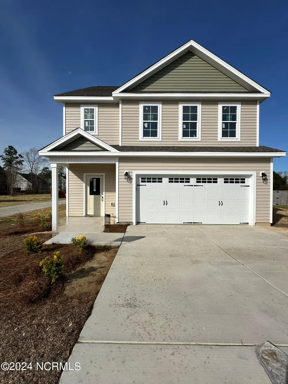 **Move In Ready** Welcome to 513 Poults Drive, your new residence. The ''Wedgewood'' floor plan presents expansive and inviting living spaces in a peaceful country setting just beyond city limits, with convenient proximity to Camp Lejeune and the picturesque beaches of North Carolina. This 1,906-square-foot home is nestled in the tranquil Turkey Ridge development, featuring exterior elements like architectural shingles, low-maintenance vinyl siding, and beautiful landscaping. Enter to discover welcoming features, including smooth 9-foot ceilings on the first floor, contemporary lighting, and modern paint and finishes. Upstairs, a spacious primary bedroom with a walk-in closet resides on one side, while the guest bedrooms occupy the other, fostering a harmonious living environment. Step into a residence where every detail seamlessly combines comfort and style.